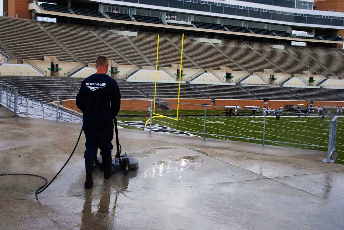 Constant vehicle and foot traffic means oil, grease, dirt, and algae build up fast. If ignored, stains set in, concrete cracks, and walkways become safety hazards. Steamaway’s deep-clean pressure washing removes buildup and protects your property from costly repairs — while keeping customers safe and impressed.